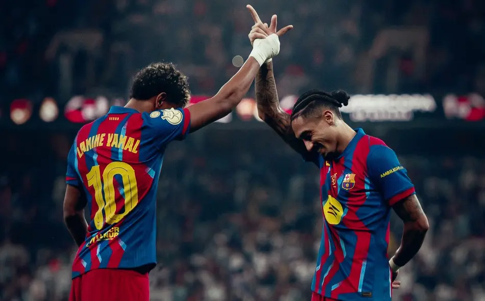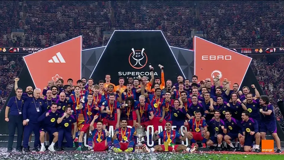 全场比赛可谓一波三折,上半场几乎没有任何的波澜,直到补时阶段,两队3分钟打进3粒进球。下半场回来后两队激烈的竞争气氛直接拉满,最后时刻德容被红牌罚下。最终全场比赛,拉菲尼亚上演梅开二度,莱万破门,而皇马这边则是维尼修斯、贡萨洛加西亚破门,巴萨3:2战胜皇马,加冕西超杯冠军。