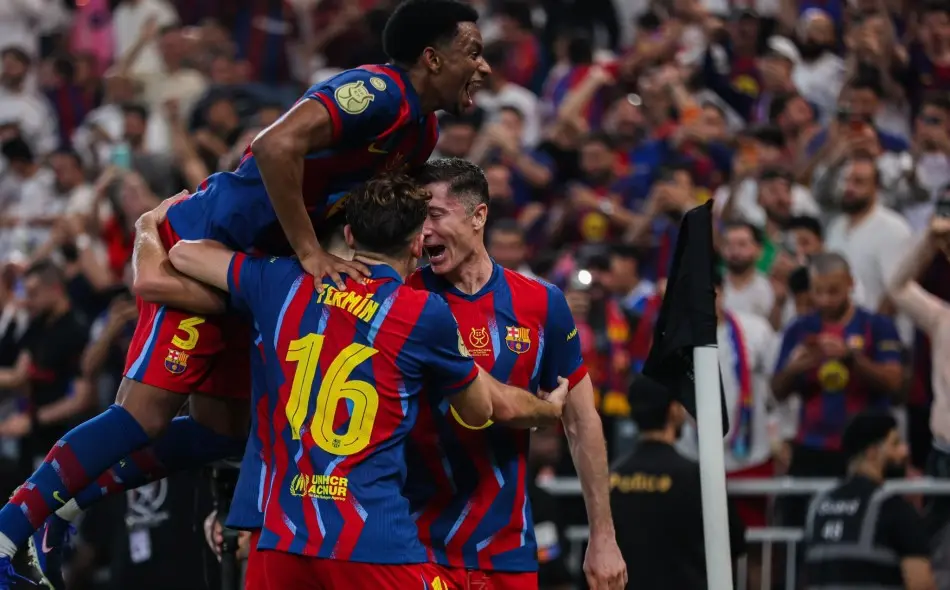 面对落后的局面,阿隆索换上姆巴佩,展开最后的反扑。领先之后的巴萨,利用控球优势不断掌控节奏,补时阶段的第一分钟,德容和姆巴佩的争抢中,直接被裁判红牌罚下!眼见巴萨少了一个人,皇马开启了全力的反扑!拉什福德面对大单刀射偏,紧接着卡雷拉斯禁区内无人防守的情况下,射门绵软无力被霍安加西亚扑住,而比赛也正式结束!